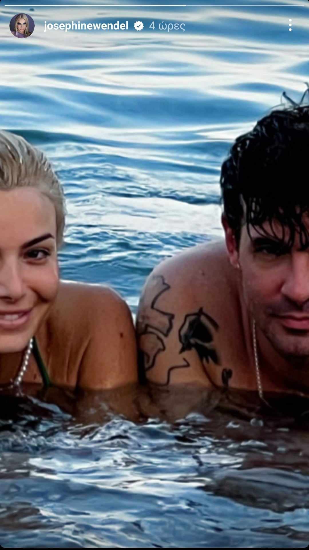 Στη φωτό απεικονίζονται μέσα στο νερό, με χαμόγελο στην κάμερα με τα κεφάλια τους σχεδόν να σμίγουν.