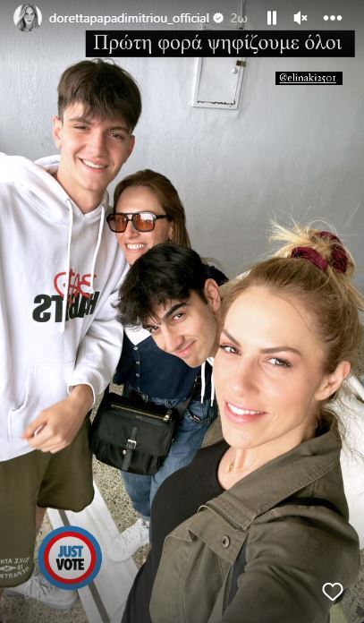 Η Ντόρα Κουτροκόη απαθανάτισε τη στιγμή που έριχνε την ψήφο της γράφοντας στη λεζάντα: «Με χαρά συμμετέχουμε στη γιορτή της Δημοκρατίας!!! Καλή ψήφο όλοι μας!».