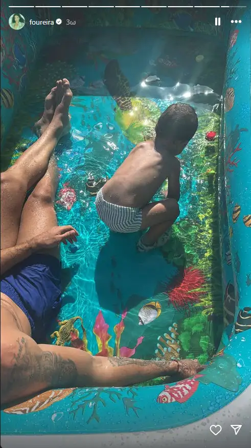 Στη νέα της ανάρτηση η Ελένη Φουρέιρα δημοσίευσε φωτογραφία με τον σύντροφό της, Αλμπέρτο Μποτία και τον μικρό Ερμή στη φουσκωτή πισίνα.