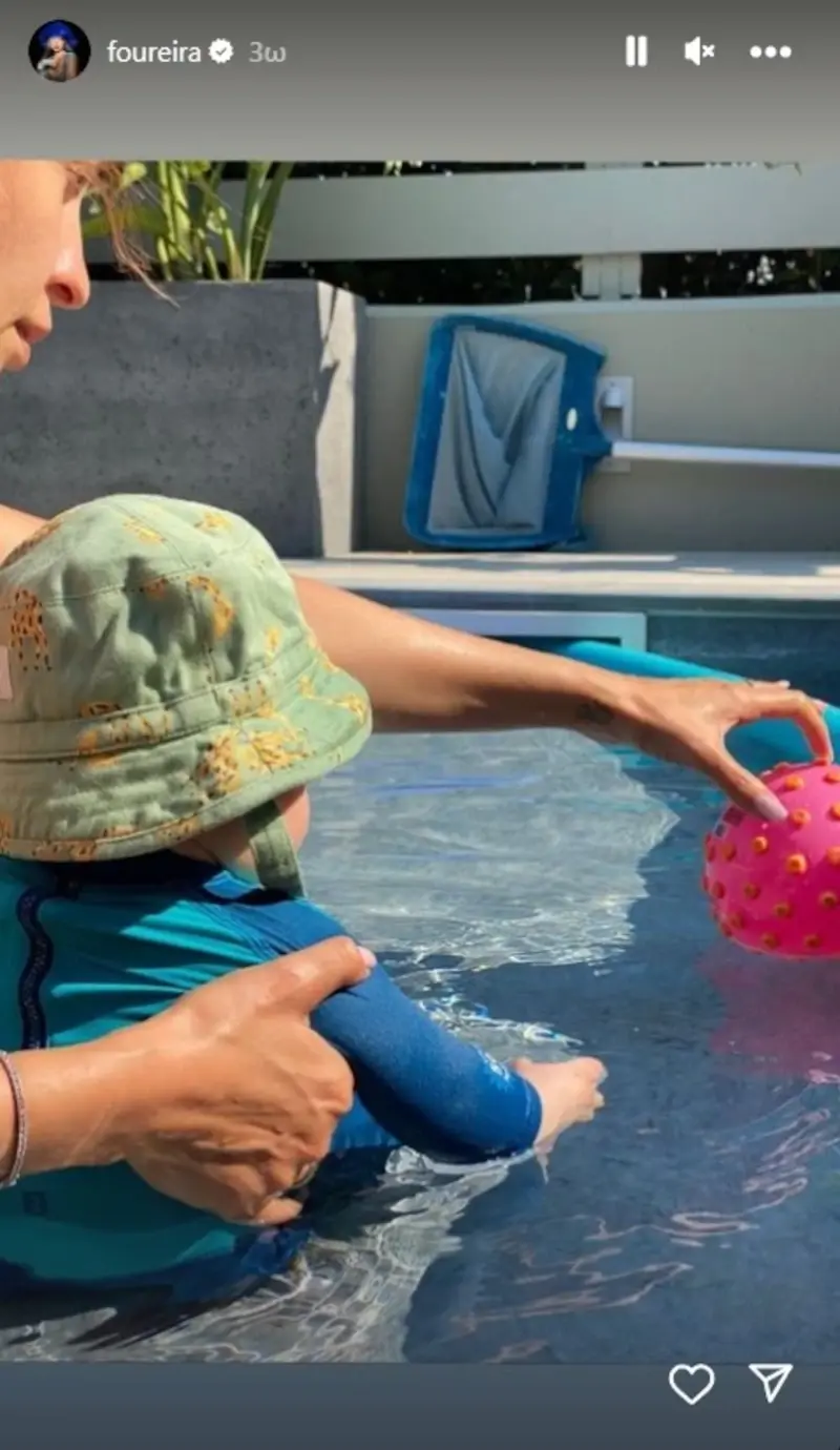 Η Ελένη Φουρέιρα σε μία σπάνια ανάρτησή της με τον γιο της απεικονίζεται μαζί του να απολαμβάνουν παιχνίδια στο νερό μέσα στην πισίνα.