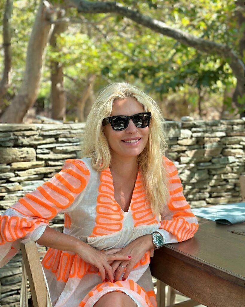 Η Ελένη Μενεγάκη βρίσκεται στην Άνδρο, όπου διατηρεί ξενοδοχειακή μονάδα ο σύζυγός της Ματέο Παντζόπουλος, και χαίρεται την κάθε στιγμή.
