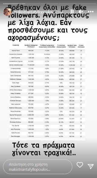 Από το απόγευμα της Τρίτης, ο Μάκης Τριανταφυλλόπουλος έχει βάλει στο στόχαστρο τους influencers και με συνεχείς αναρτήσεις του έχει βγάλει στη φόρα τα αστρονομικά ποσά που παίρνουν για κάθε post, αλλά και πόσους ψεύτικους followers έχουν, κατακεραυνώνοντάς τους…