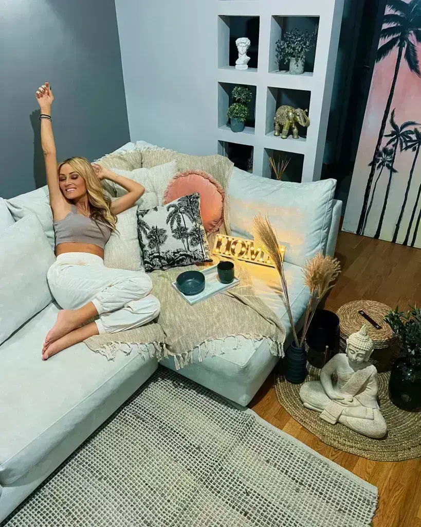 Η Ελένη είναι λάτρης της minimal αισθητικής με το γκρι και το λευκό χρώμα να κυριαρχούν. Μικρά boho διακοσμητικά, κάδρα με quotes και φυτά εσωτερικού χώρου προσθέτουν αίσθηση ζεστασιάς, ενώ δεν λείπουν οι girly πινελιές.