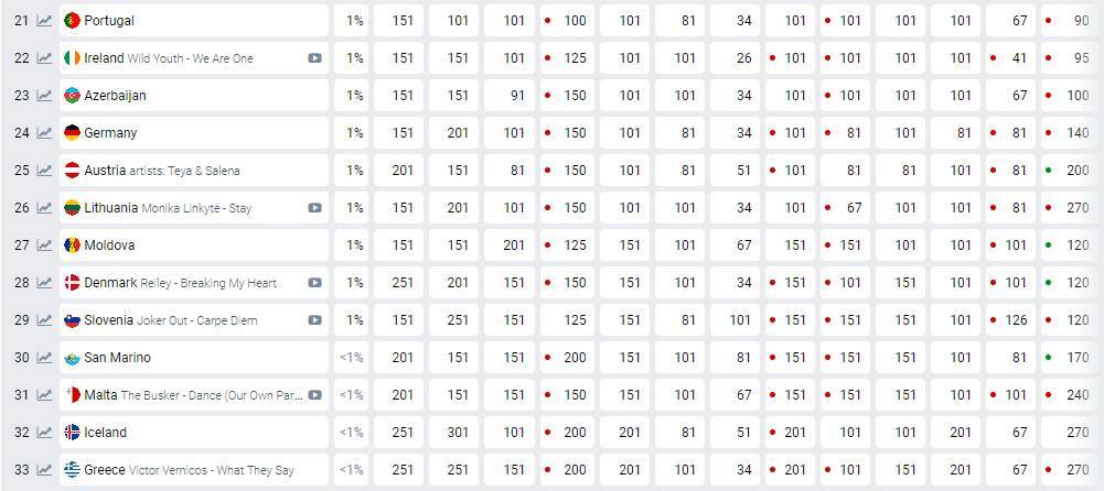 Το προηγούμενο αρνητικό ρεκόρ είχε το συγκρότημα Argo το 2016 που βρίσκονταν στην 31η θέση.