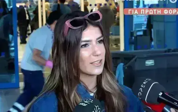 Μαζί με τη 16χρονη στο αεροδρόμιο ήταν η μητέρα της και ο Δημήτρης Κοντόπουλος, ο οποίος υπογράφει το τραγούδι.