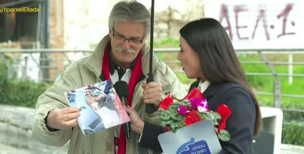 Η δημοσιογράφος χάρηκε πάρα πολύ για την έκπληξη κι είπε με χιούμορ: «Ο κύριος είναι ο θείος του Σωτήρη του άντρα μου. Έχετε φροντίσει να έχω του Αγίου Βαλεντίνου δώρο. Σιγά μην μου πάρει ο Σωτήρης. Να με δείξω νύφη. Σωτήρη ο θείος σου φρόντισε. Στο πανελλήνιο τα οικογενειακά μας. Πάρα πολύ ωραίο και το κυκλάμινο είναι το αγαπημένο φυτό. Δεν ξέρω πως το ήξερε.»