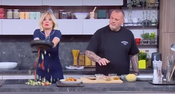 Η παρουσιάστρια ένιωσε αμήχανα και ο σεφ αναφώνησε: «Χίλια συγγνώμη, ντροπή τώρα αυτό», απάντησε η Φαίη Σκορδά.