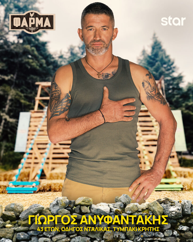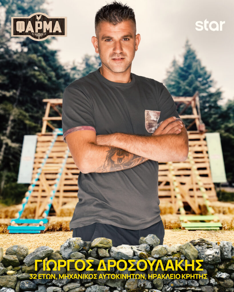 Ο Γιώργος δεν χρειάζεται πολλά λόγια για να ξεχωρίσει. Αρκεί ένα χαμόγελο, το λευκό του σαρίκι και μια μαντινάδα για να καταλάβεις ότι έχεις μπροστά σου έναν γνήσιο Κρητικό. Οδηγός νταλίκας, πρώην βοσκός, με εμπειρία σε αγροτικές καλλιέργειες, ηγετικός και ατρόμητος, στη Φάρμα νιώθει στο στοιχείο του. Δε φοβάται τίποτα, πέρα από τις «υπόγειες» στρατηγικές, αφού προτιμά τις ξεκάθαρες κουβέντες και να κοιτάει τους ανθρώπους στα μάτια. Ο ίδιος είναι φανατικός οπαδός της Φάρμας και δήλωσε συμμετοχή δίνοντας υπόσχεση στην οικογένειά του ότι θα κερδίσει για αυτούς! Και, όπως δηλώνει, έχει μάθει να τηρεί τον λόγο του.