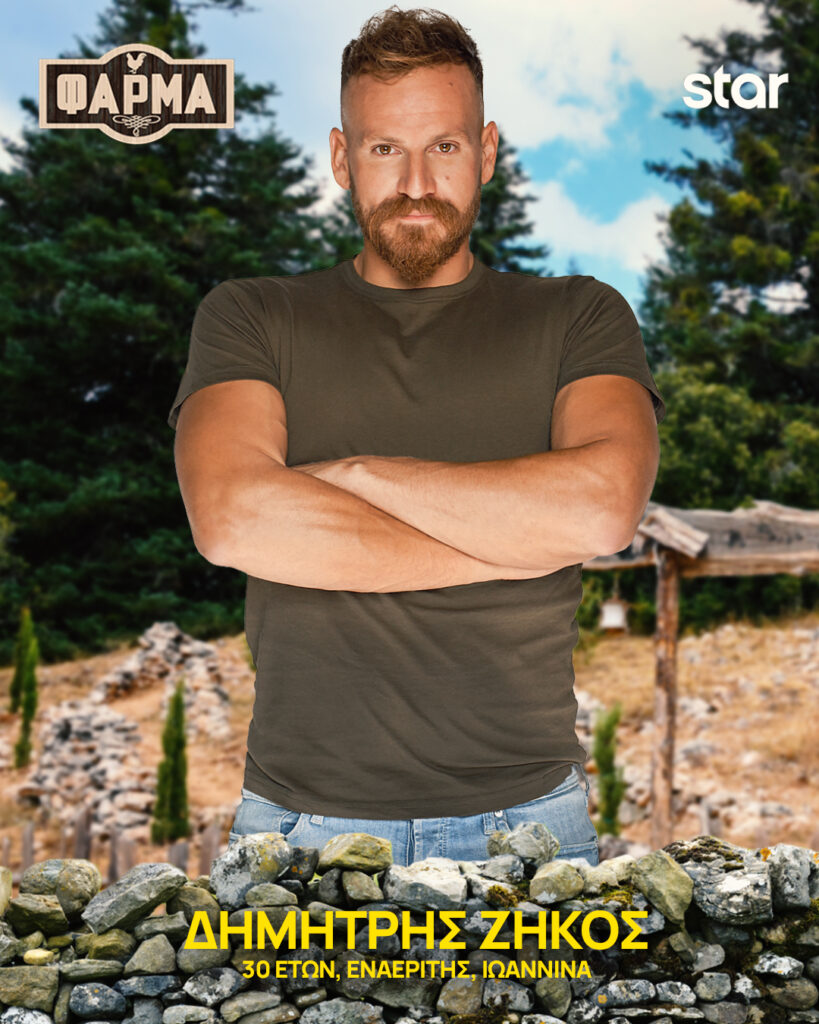 Με καταγωγή από τα Ιωάννινα και εναερίτης στο επάγγελμα, ο Δημήτρης έχει μάθει να βλέπει τη θέα από ψηλά και αυτή τη φορά έχει λαχτάρα να δει τη θέα από την κορυφή της Φάρμας. Στη Φάρμα δεν σκοπεύει να μείνει θεατής, αλλά να ηγηθεί. Η αρχηγία, όμως, δεν είναι για εκείνον θέμα εγωισμού, αλλά ευθύνης. Και πιστεύει πως μπορεί να διοικήσει σωστά την ομάδα του. Αν και λακωνικός, έχει μάθει να λέει τα πράγματά με το όνομά τους και αν κάτι δεν του αρέσει θα το πει, ανοιχτά και ειλικρινά, και ας έχει επιπτώσεις. Επίμονος, αποφασιστικός και ανταγωνιστικός, δηλώνει έτοιμος να αντιμετωπίσει κάθε πρόκληση στη Φάρμα και να κερδίσει με την αξία του και μόνο! Γιατί για εκείνον είναι «θέμα τιμής» η νίκη να είναι άξια!