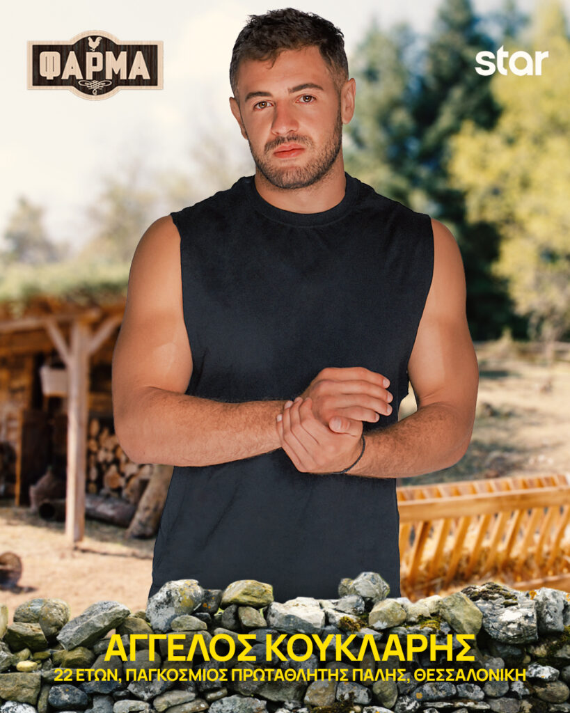 Με δύο χρυσά μετάλλια σε παγκόσμιες διοργανώσεις, ασημένιες διακρίσεις σε Ευρωπαϊκό επίπεδο στο άθλημα της πάλης στην άμμο και στην ελευθέρα πάλη, αλλά και φοιτητής στα ΤΕΦΑΑ Θεσσαλονίκης, ο Άγγελος έχει αφιερώσει τη ζωή του στον αθλητισμό. Για εκείνον το έπαθλο της Φάρμας δεν είναι απλώς ένα τρόπαιο, αλλά η στήριξη που χρειάζεται για να πετύχει το μεγάλο του όνειρο: μια θέση στους επόμενους Ολυμπιακούς Αγώνες! Δεν του αρέσουν τα «κόλπα», να χειρίζεται ανθρώπους, να μιλάει χωρίς λόγο. Προτιμά να παλεύει, με πειθαρχία, αξίες και στοχοπροσήλωση. Αυτό σκοπεύει να κάνει και στη Φάρμα. Και είναι βέβαιος ότι όταν χρειαστεί, θα σταθεί στο ύψος των περιστάσεων και θα ανέβει στο βάθρο της Φάρμας νικητής!