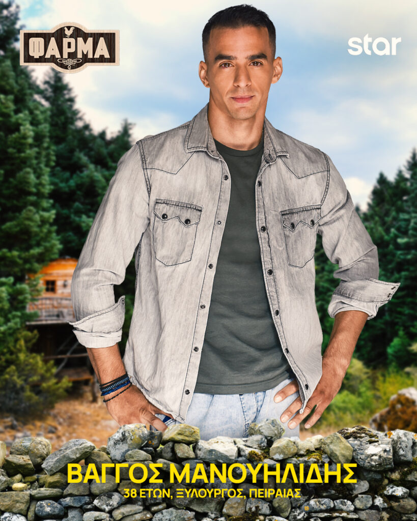 Προπονητής πολεμικών τεχνών, αθλητής του pole sport και ξυλουργός με μεράκι, ο Βάγγος, όπως προτιμά να τον φωνάζουν, έρχεται από τον Πειραιά και ζει μια ζωή που ισορροπεί ανάμεσα στη δύναμη και στην ευαισθησία. Μεγάλωσε σε δύσκολες συνθήκες, που θα λύγιζαν πολλούς, στάθηκε, όμως, όρθιος και έμαθε να προστατεύει ό,τι αγαπά. Οι απαιτήσεις της Φάρμας δεν τον τρομάζουν, ξέρει από σκληρή δουλειά και ξέρει να τα καταφέρνει μόνος. Δηλώνει δυναμικός, μαχητικός και επίμονος στους στόχους του και στη Φάρμα ο μόνος στόχος του είναι η νίκη. Έρχεται, όμως, αποφασισμένος να μείνει αληθινός, να μην προδώσει τις ηθικές του αξίες και να παλέψει για μια νίκη που να έχει ουσία, αποδεικνύοντας ότι μπορείς να κερδίσεις παίζοντας καθαρά και τίμια.