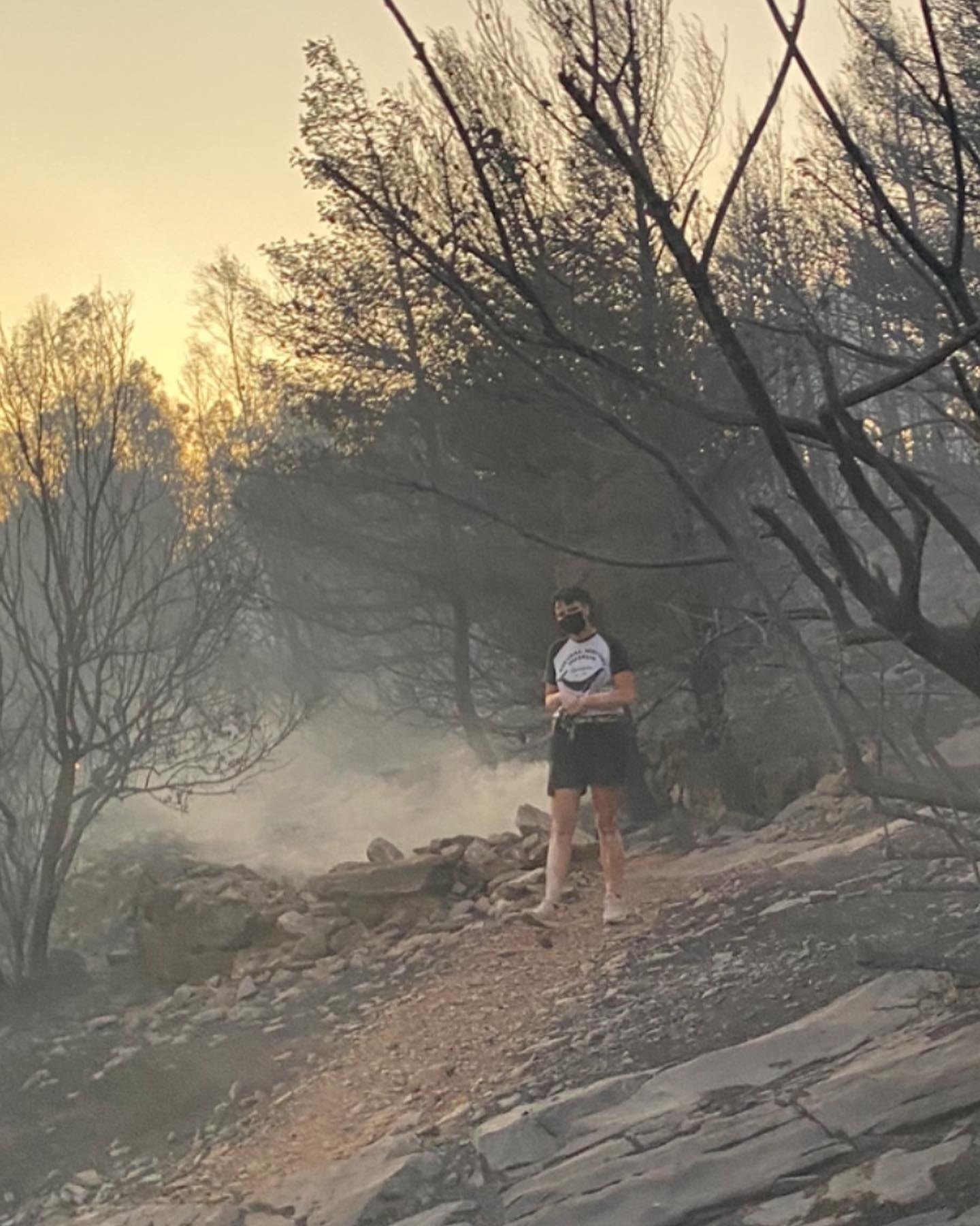 Η δημοσιογράφος δημοσίευσε στιγμιότυπα από την καμένη περιοχή κοντά στο σπίτι της: «Ο σπιτονοικοκύρης με αυτοθυσία έσωσε το σπίτι μου. Κάποια άλλα δίπλα κάηκαν.