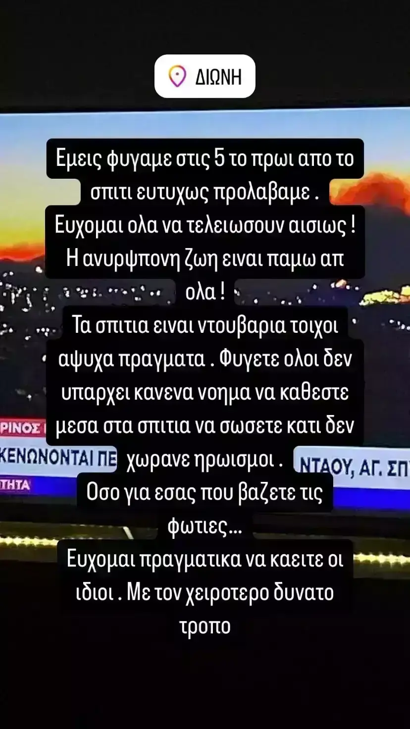 «Εμείς φύγαμε στις 5 το πρωί από το σπίτι. Ευτυχώς προλάβαμε. Εύχομαι όλα να τελειώσουν αισίως. Η ανθρώπινη ζωή είναι πάνω από όλα.