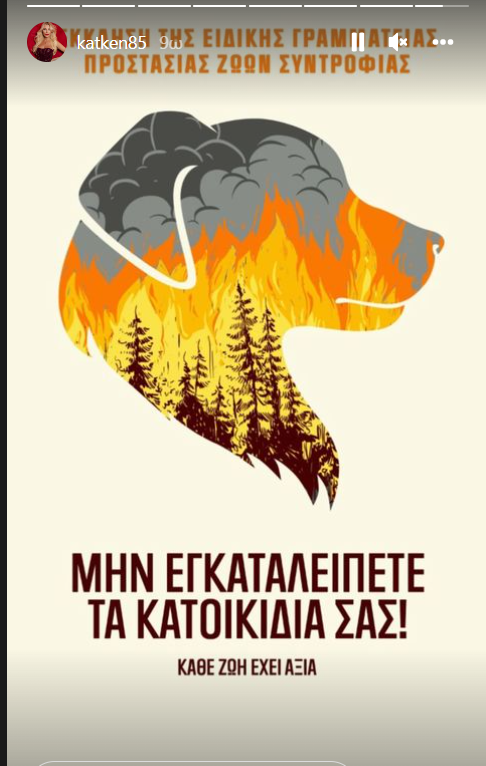 Η Κατερίνα Καινούργιου παρότρυνε τους followers της να μην εγκαταλείπουν τα ζωάκια τους στα σπίτια, αν αναγκαστούν να φύγουν λόγω της φωτιάς.