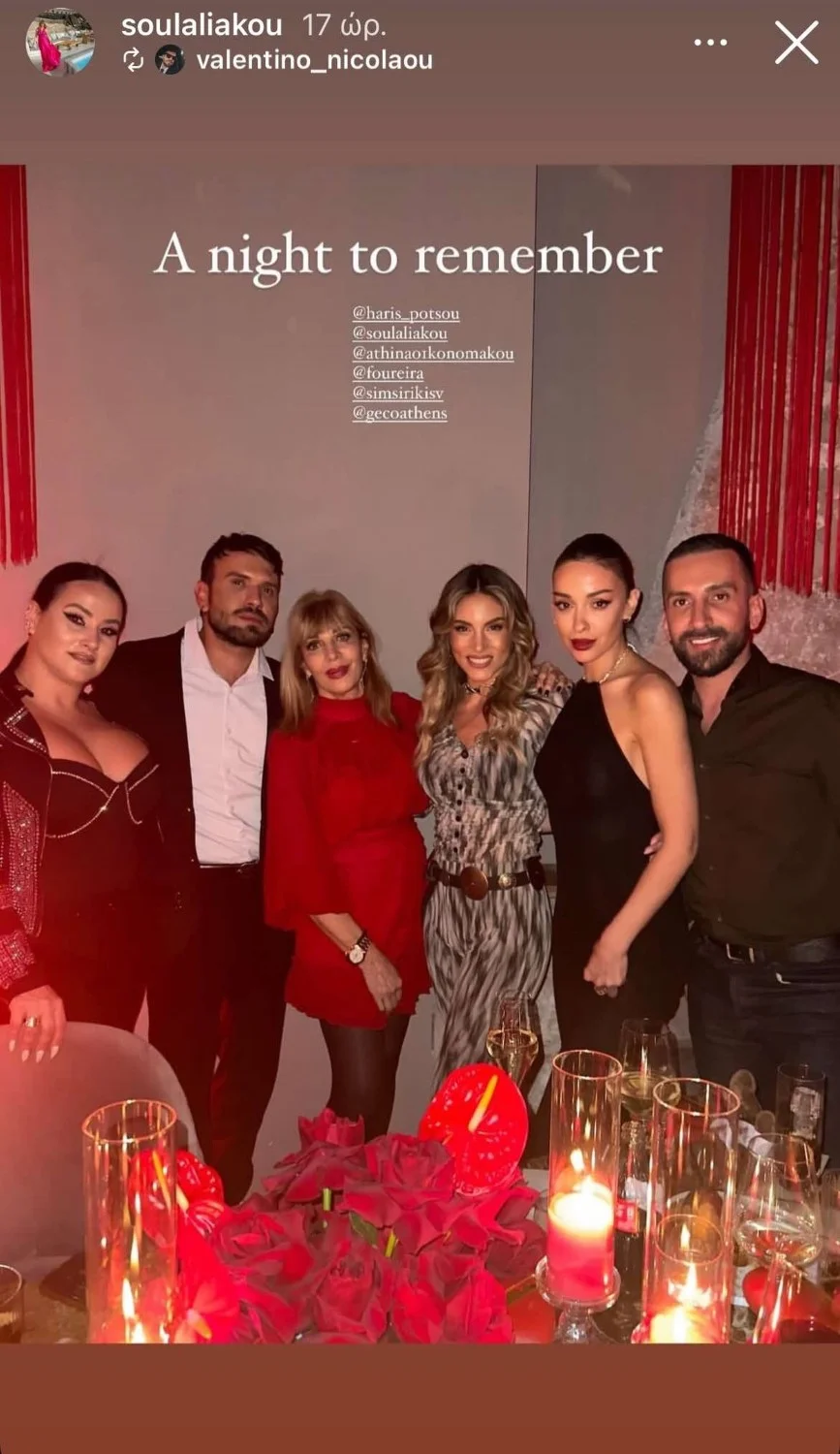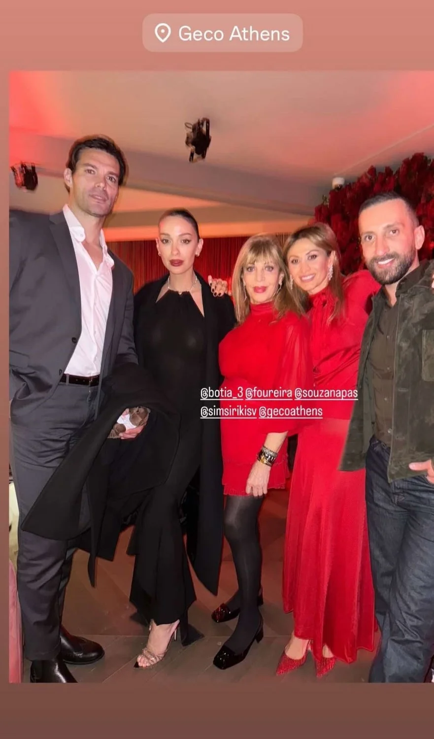 Σε εικόνες που ήρθαν στο «φως» μέσω social media, το ζευγάρι ποζάρει μαζί με άλλους παρευρισκόμενους στο πάρτι, μεταξύ αυτών, και η Αθηνά Οικονομάκου, αλλά και η Σούλα Λιάκου.