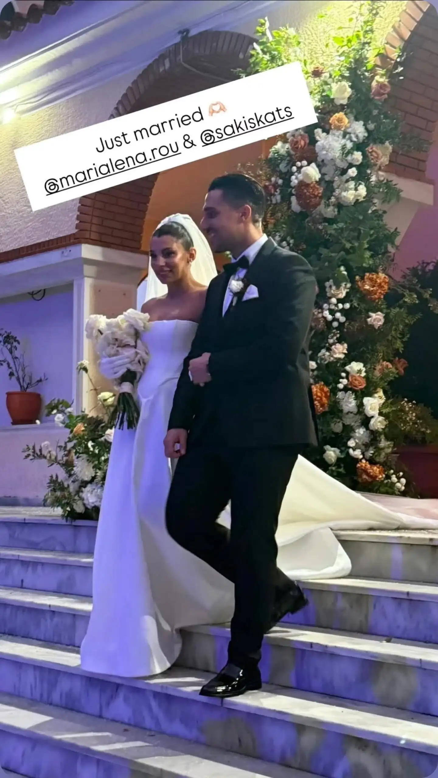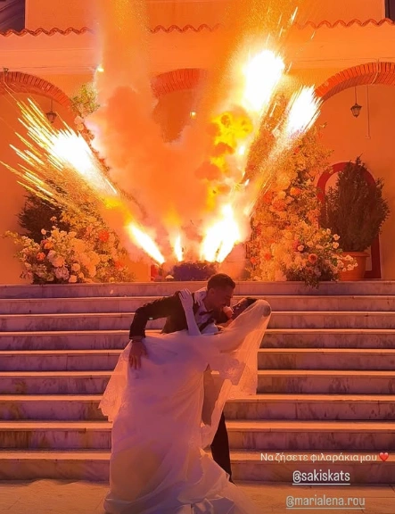 Η έξοδος από την εκκλησία ήταν ένα πραγματικό θέαμα: οι καλεσμένοι υποδέχθηκαν το ζευγάρι με χειροκροτήματα και ρύζι, ενώ τα πυροτεχνήματα φώτιζαν τον ουρανό τη στιγμή που ο Σάκης αγκάλιαζε και φιλούσε τη Μαριαλένα στα σκαλιά της εκκλησίας, χαρίζοντας ένα μαγικό και αλησμόνητο σκηνικό.