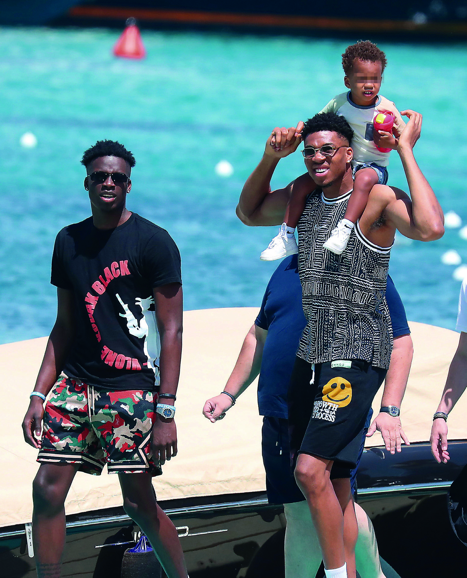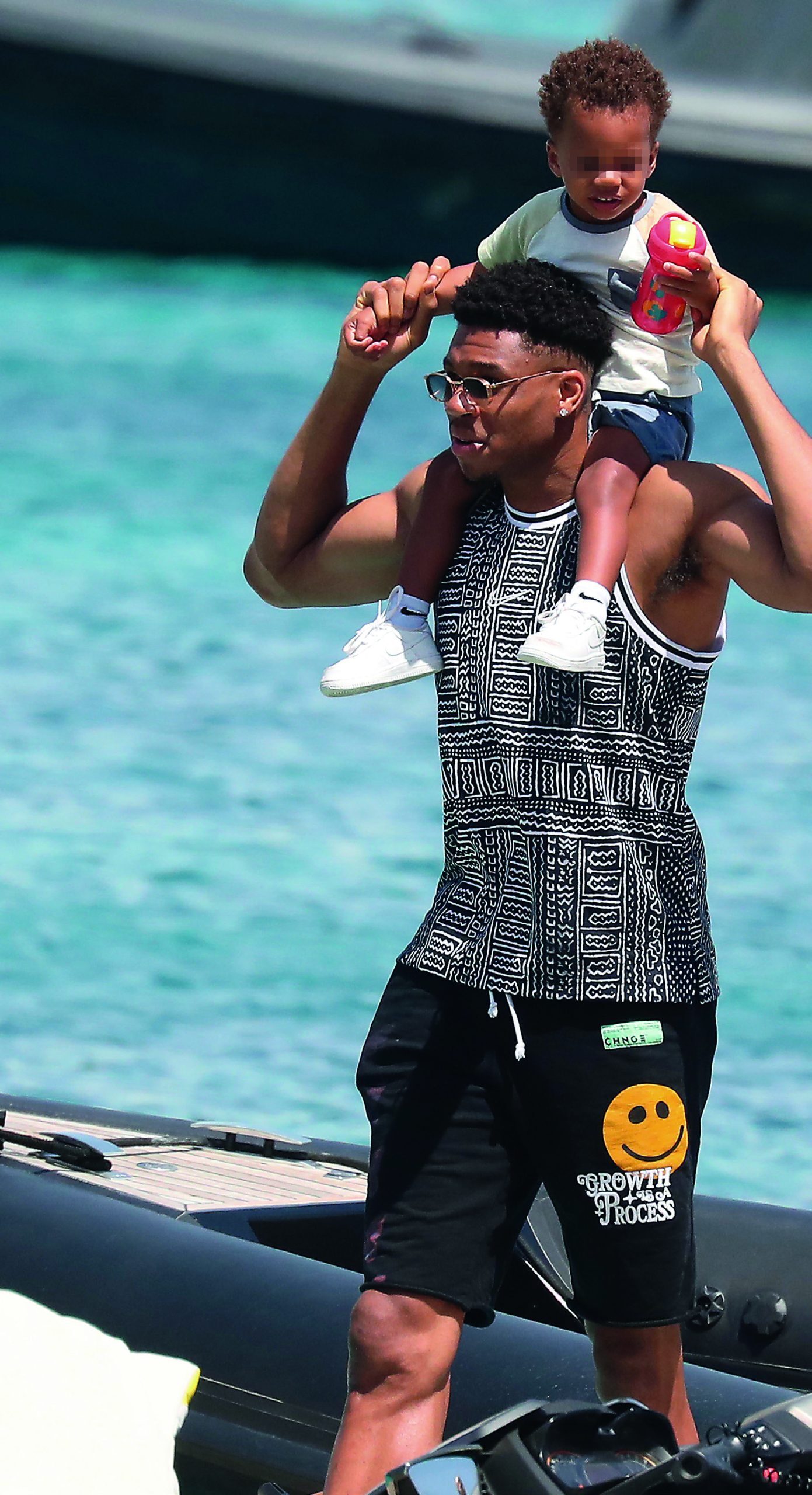 Μέχρι τότε, διακοπές! Εφόσον, πλέον, έχει περισσότερο ελεύθερο χρόνο για τον εαυτό του και την οικογένειά του, αποφάσισε να έρθει φέτος στην Ελλάδα λίγες μέρες νωρίτερα, για να δει αγαπημένους φίλους και μέρη που έχει, πια, σπάνια την ευκαιρία να επισκεφθεί. Παραδοσιακά στο πρόγραμμά του βρίσκεται η Μύκονος, με τον φακό να τον συναντά στο «νησί των ανέμων» μαζί με τη σύζυγό του, Μαράια Ριντλεσπρίγκερ, τους δύο γιους τους, Λίαμ-Τσαρλς και Μάβερικ-Σέι, και τον αδελφό του και συμπαίκτη του, Θανάση Αντετοκούνμπο. Τα φλας έπεσαν κατευθείαν πάνω του κι εκείνος χάρισε ένα πλατύ χαμόγελο, ενώ κρατούσε αγκαλιά τον μεγάλο του γιο, ο οποίος έχει πάρει το όνομα του πατέρα του, που «έφυγε» νωρίς.
