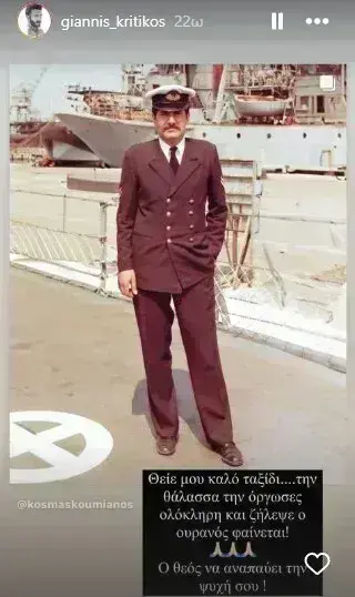 «Θείε μου καλό ταξίδι… την θάλασσα την όργωσες ολόκληρη και ζήλεψε ο ουρανός φαίνεται! Ο Θεός να αναπαύει την ψυχή σου» ανέφερε συγκεκριμένα.
