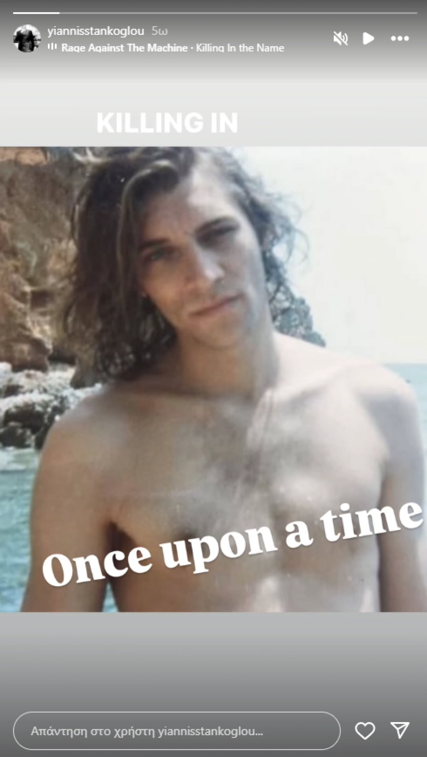 Αυτή τη φορά, ανήρτησε σε story μία φωτογραφία του από το παρελθόν. Σε αυτή, ποζάρει με μακριά μαλλιά στην παραλία, κοιτώντας τον φακό.