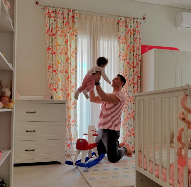 Γεμάτο χρώματα και φωτεινό, με το ροζ σε όλους τους τόνους να πρωταγωνιστεί, είναι ένας μικρός παράδεισος για την μικρούλα αλλά και για τον Γιώργο με τη Δήμητρα.