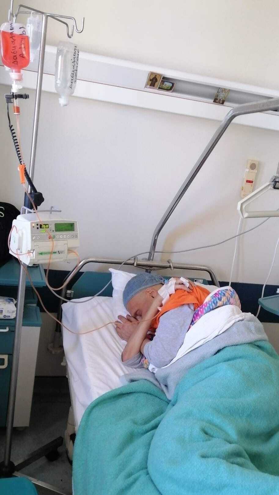 Συγκεκριμένα σχολίασε στη λεζάντα της φωτογραφίας: «Καλημέρα Αγάπες μου!!! Πολύχρωμα και Έντονα…Τουλάχιστον όταν κοιμάσαι λιγάκι από τη χημεία που παίρνει το σωματάκι μας δεν πονάς… Οι συναγωνιστές της μάχης με το Θηρίο γνωρίζουν πολύ καλά τι εννοώ!!! Και να έχεις και ένα χεράκι πάνω στο κορμί σου να σε αγγίζει και να σε χαϊδεύει όπως κάνει το κοριτσάκι μου ο ΑΓΓΕΛΟΣ μου!!! Εύχομαι Υγεία σε όλο το Κόσμο και η Παναγία μαζί μας!!! ΑΜΗΝ».