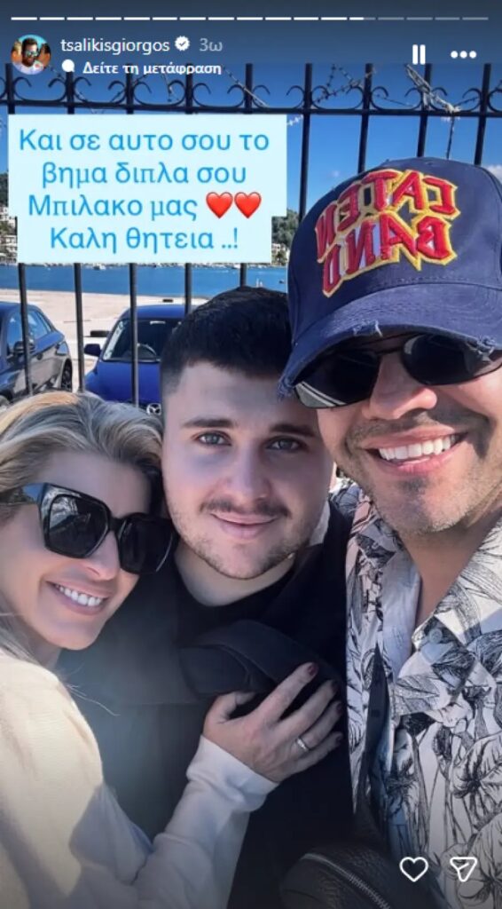 Η δημοσίευση γέμισε με ευχές φίλων και θαυμαστών, που συνεχάρησαν τον γιο του για την έναρξη της νέας του πορείας και την οικογένεια Τσαλίκη για τη συγκινητική τους στήριξη.