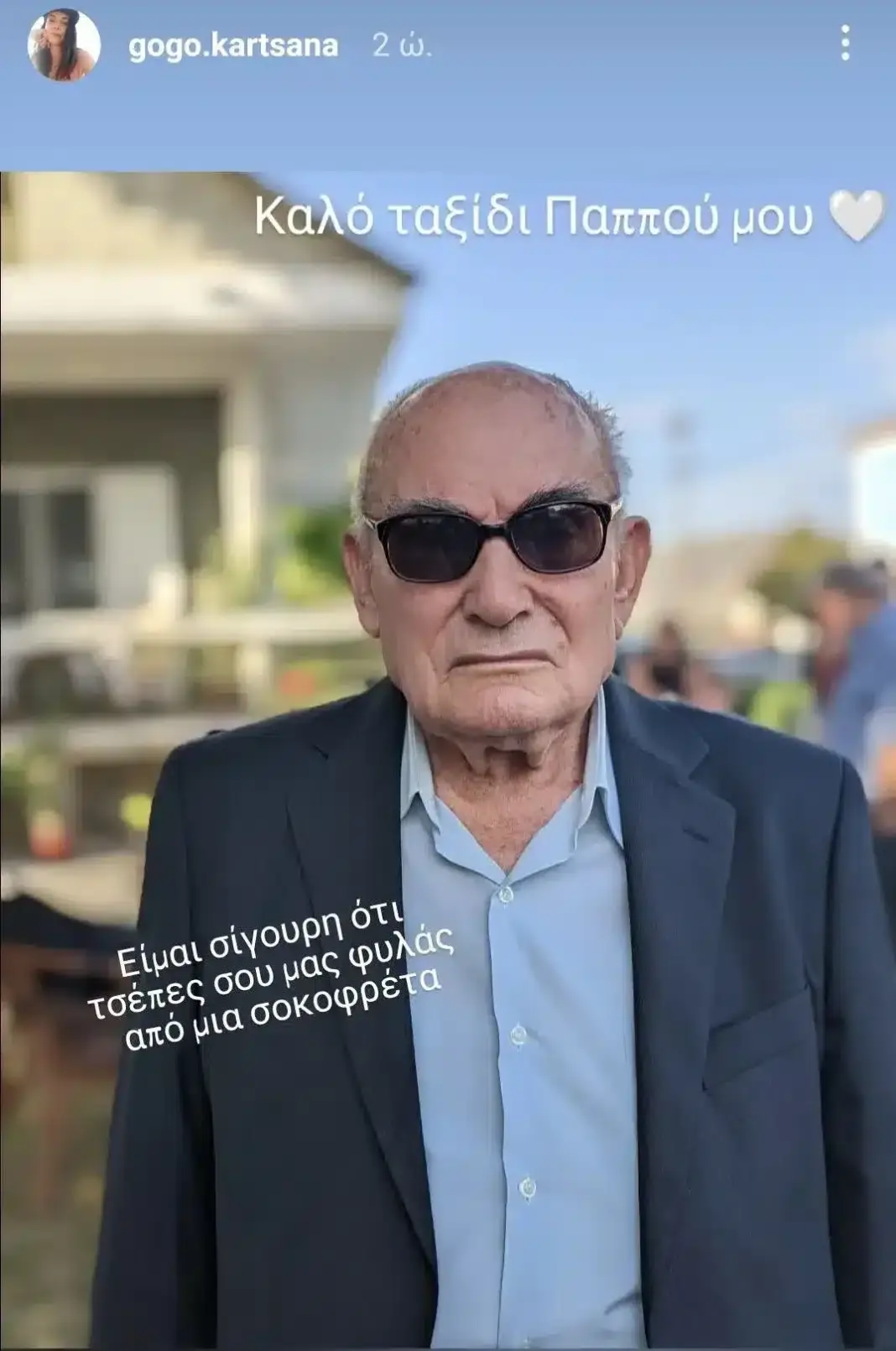 Η Γωγώ Καρτσάνα δημοσίευσε μια φωτογραφία στο προσωπικό της λογαριασμό ανακοινώνοντας το θάνατο του πάππου της.