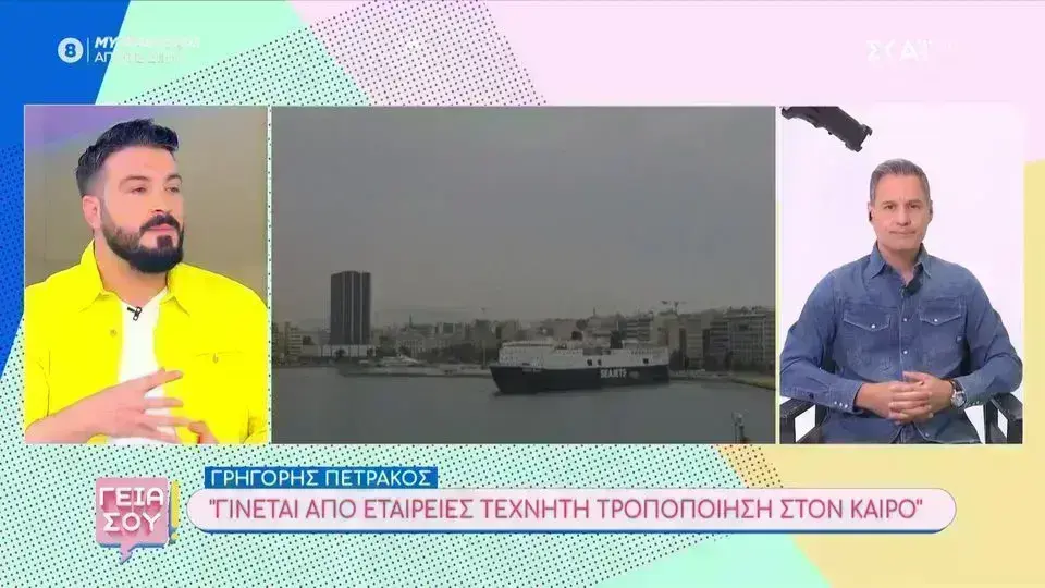 «Και πώς το ξέρουμε;» συνέχισε η Μαρία Μπακοδήμου με τον τραγουδιστή να απαντά: «Ακόμα και στο Google να μπείτε και πατήστε εταιρείες τροποποίησης καιρού θα σας βγάλει κανονικές εταιρείες. Κερδίζουν χρήματα. Το ποιος τις βάζει είναι το θέμα και για ποιο λόγο, εμείς αυτό ρωτάμε. Όλα αυτά τα αεροπλάνα, γιατί με αεροπλάνα τα κάνουν, κάνουν αεροψεκασμούς. Αυτό που ρωτάει πάρα πολύς κόσμος είναι να υπάρξει διαφάνεια για το τι ακριβώς ρίχνουν στον αέρα και με ποιο τρόπο τροποποιείται ο καιρός και αν υπάρχει διαφάνεια πάνω σ’ αυτό. Γιατί όλα αυτά γεμίζουν την ατμόσφαιρα με βαρέα μέταλλα και μετά όταν πέφτει σκόνη πέφτουν κι αυτά και τα εισπνέουμε. Τα βαρέα μέταλλα είναι τοξικά. Φυσικά, μας επηρεάζουν και εγκεφαλικά και ψυχολογικά πάρα πολύ. Αν ρωτήσετε τι παρενέργειες έχουν βαρέα μέταλλα στον οργανισμό θα δείτε ότι είναι φρικτές».