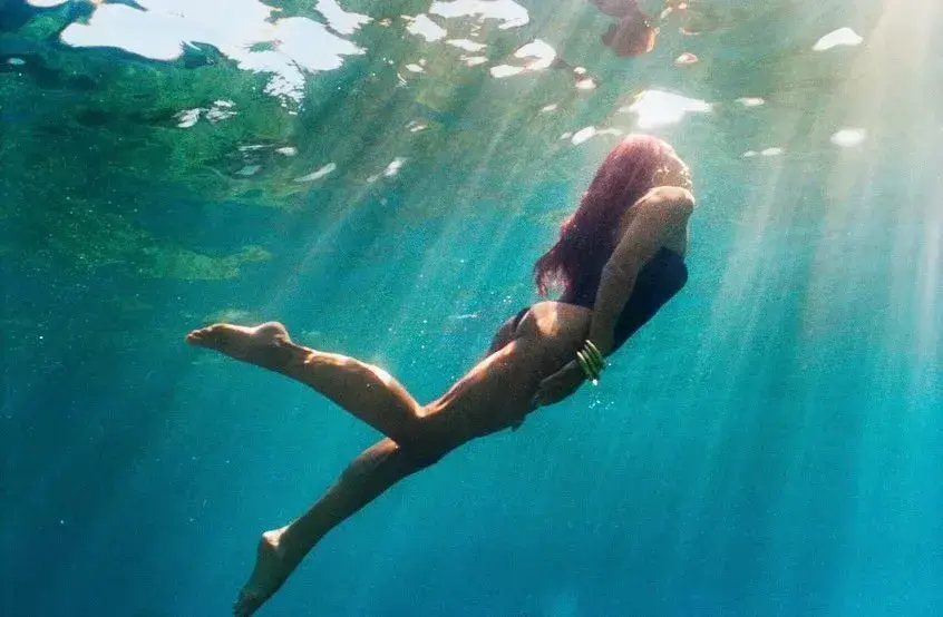 Αυτή τη φορά, δημοσίευσε στον προσωπικό της λογαριασμό μία σειρά από υποβρύχιες λήψεις και σε αυτές, φαίνεται να φορά ένα μαύρο ολόσωμο μαγιό, ενώ κολυμπά στον βυθό.