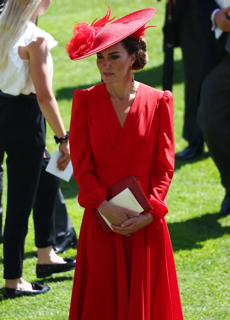 Η πριγκίπισσα της Ουαλίας εμφανίστηκε με κόκκινο φόρεμα Alexander McQueen και vintage τσάντα Hermes, ενώ το Philip Treacy καπέλο ολοκλήρωσε μοναδικά το look.