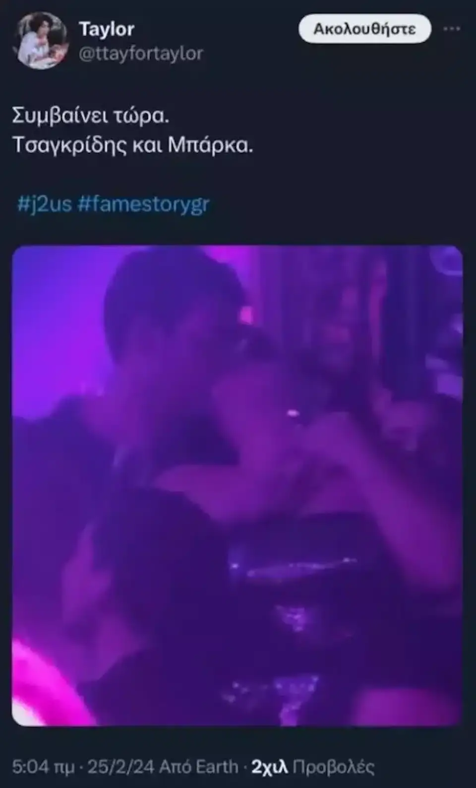 Υπενθυμίζεται ότι εν μέσω έντονης φημολογίας ότι η Μπάρκα με τον Τσαγκρίδη διατηρούν δεσμό, σήμερα το μεσημέρι κοινοποιήθηκε φωτογραφία του φερόμενου ζεύγους σε μία τρυφερή στιγμή, κατά την διάρκεια εξόδου τους σε νυχτερινό κέντρο στην Αθήνα, χθες το βράδυ.