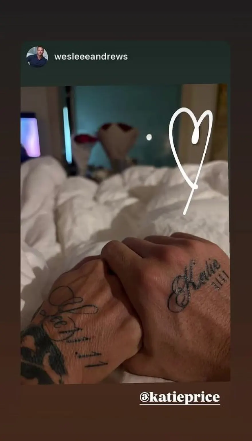 Στις φωτογραφίες που ανάρτησε η Κέιτι Πράις, εκείνη φαίνεται να ποζάρει μαζί με τον σύντροφό της μπροστά από δεκάδες κόκκινα τριαντάφυλλα. Το υλικό που κοινοποιήθηκε δείχνει ένα εντυπωσιακό διαμαντένιο μονόπετρο στο αριστερό της χέρι, ενώ σε ένα από τα στιγμιότυπα διακρίνεται το χέρι του επιχειρηματία, στο οποίο εκείνος έχει κάνει τατουάζ με το όνομά της. Οι εικόνες εστιάζουν στην αισθητική του στιγμιότυπου: λουλούδια, κοσμήματα και κοντινά καρέ που αναδεικνύουν το μονόπετρο.