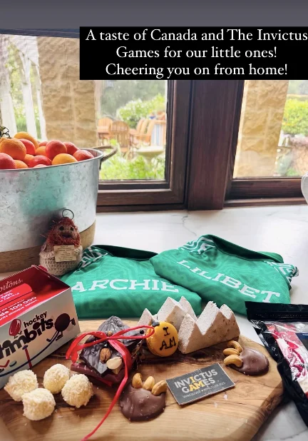 «Μια γεύση από Καναδά και Invictus Games για τα μικρά μας!», έγραψε τη λεζάντα της φωτογραφίας. Τα δώρα ήταν διάσημες καναδικές λιχουδιές, που σίγουρα θα ξετρέλαναν τα μικρά της. Ο Άρτσι και η Λίλιμπετ έλαβαν επίσης ειδικά κατασκευασμένες φανέλες με τα ονόματά τους.