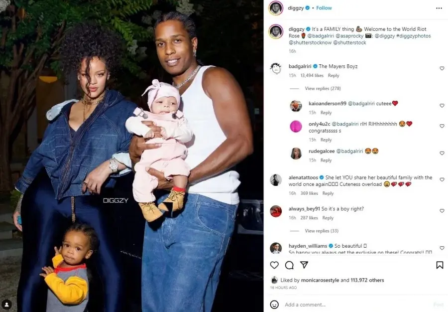 Στις φωτογραφίες τους Diggs, η Rihanna ποζάρει αγκαλιά με τον γιο της ενώ ξεχωρίζει και η φωτογραφία του ASAP, κατά κόσμον Ramik Mayers με τους δύο γιους του