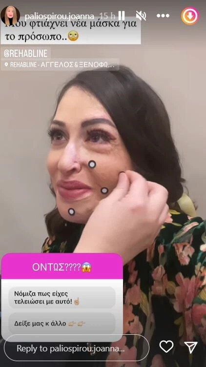 Πιο συγκεκριμένα, έδειξε το εργαλείο με το οποίο αποτυπώνει η γιατρός το καλούπι για να φτιάξουν τη μάσκα ακριβώς στα μέτρα του προσώπου της, αλλά και την οθόνη του υπολογιστή με ό,τι καταγράφει το εν λόγω εργαλείο.