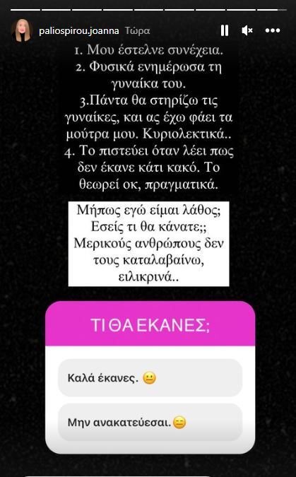 “Μην ανακατεύεσαι”» ήταν οι δύο επιλογές απάντησης που έδινε στο Instagram.