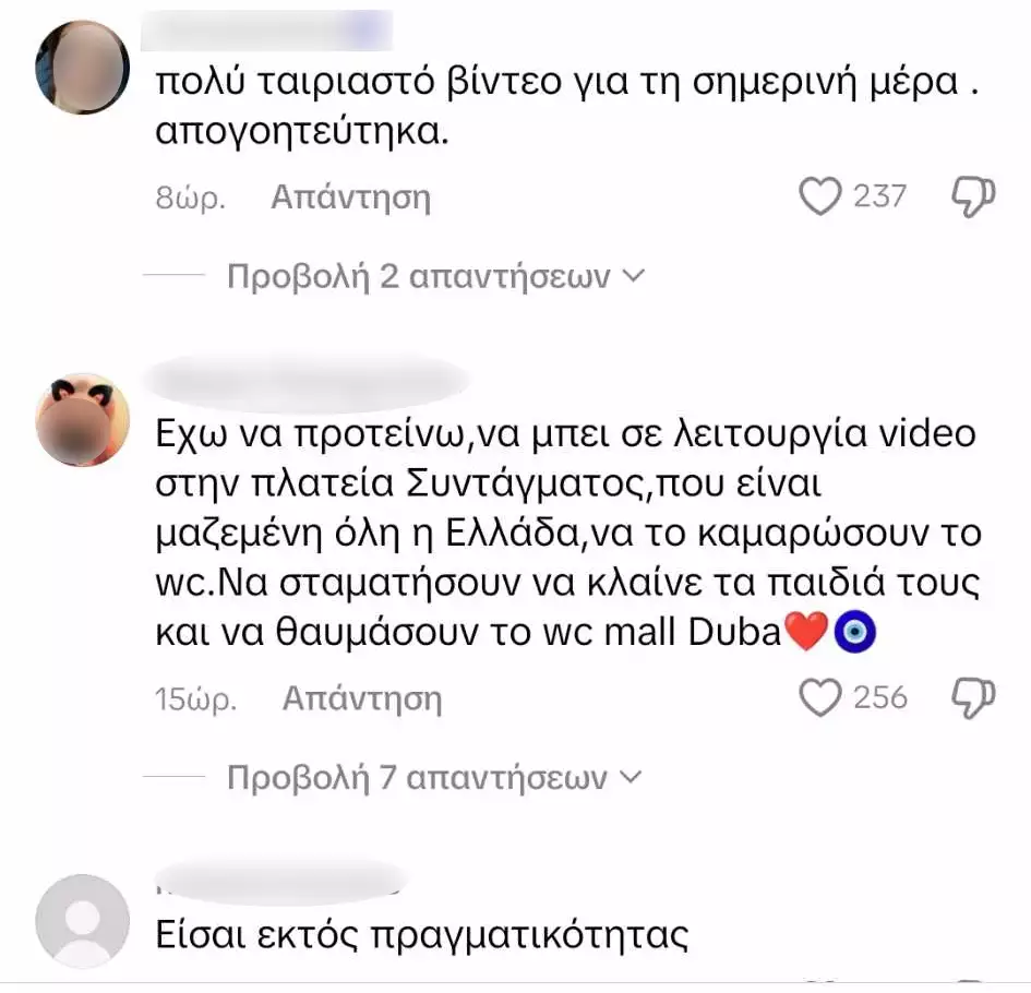 Χθες Κυριακή 26 Ιανουαρίου, την ημέρα που πραγματοποιήθηκε η συγκέντρωση για τα Τέμπη τόσο στο Σύνταγμα όσο και σε άλλες μεγάλες πλατείες της Ελλάδας, η γνωστή Influencer έδειχνε… τις τουαλέτες στο mall του Ντουμπάι αλλά και τους ξέφρενους χορούς με τους φίλους της.