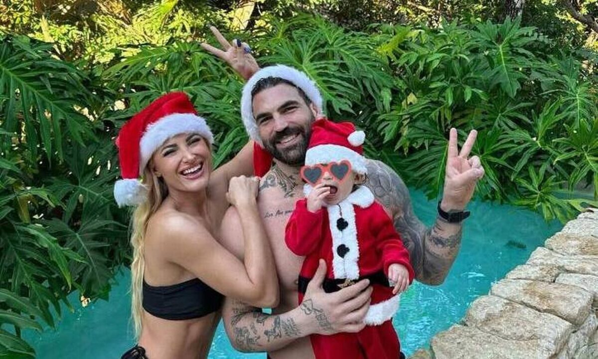 Η ίδια ποζάρει αγκαλιά με τον Δημήτρη Αλεξάνδρου και τον γιο τους στην πισίνα, με τον μικρούλη να είναι ντυμένος Άγιος Βασίλης.