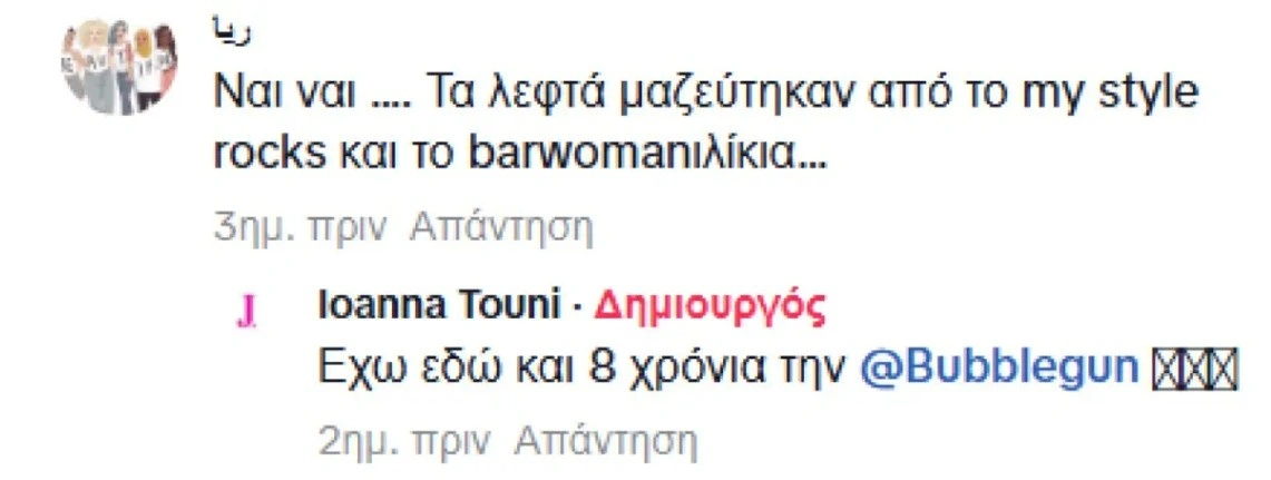 Η Ιωάννα δημοσίευσε ένα βίντεο στο προφίλ της στο Tik Tok, όπου χόρευε παραδοσιακούς χορούς στο Ντουμπάι μαζί με τους φίλους της, σημειώνοντας: «Εντωμεταξύ τα πάρτι που έκανα εγώ και η παρέα μου στο Ντουμπάι» και πρόσθεσε στη λεζάντα: «Ταξίδια κάνω με τους φίλους μου και την οικογένεια μου…. Ανθρώπους που αγαπώ και με αγαπάνε! Τίποτα περισσότερο και τίποτα λιγότερο! Ο σάπιος κόσμος που υποστηρίζει οτιδήποτε διαφορετικό, λογικά θα έχει πάει το πολύ μέχρι Καρδίτσα και βγάζει λίγο κόμπλεξ;; Ήρεμα ρωτάω… (και αγαπώ και Καρδίτσα❤️)».