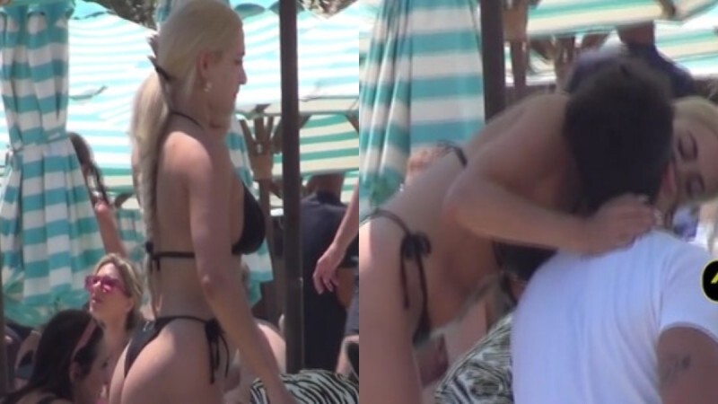 Η κάμερα του Mykonos Live TV την εντόπισε να κάνει μπάνιο και ηλιοθεραπεία αδιαφορώντας για τα βλέμματα των λουόμενων που είχαν «καρφωθεί» πάνω της. Η ξανθιά influencer φορούσε ένα μαύρο μπικίνι, το οποίο αναδείκνυε το χυμώδες κορμί της και φιλούσε παθιασμένα και έντονα τον Δημήτρη.