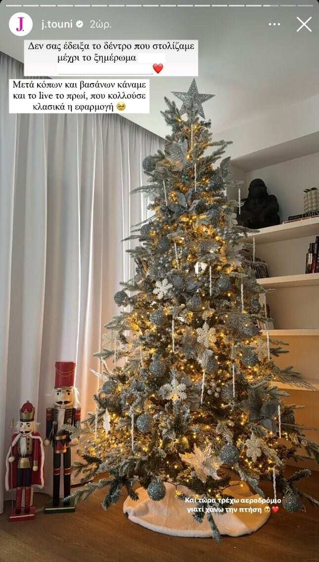 Η Ιωάννα Τούνη μάλιστα μοιράστηκε με τους ακολούθους της στο Instagram το εντυπωσιακό αποτέλεσμα από το χριστουγεννιάτικο δέντρο του σπιτιού της.