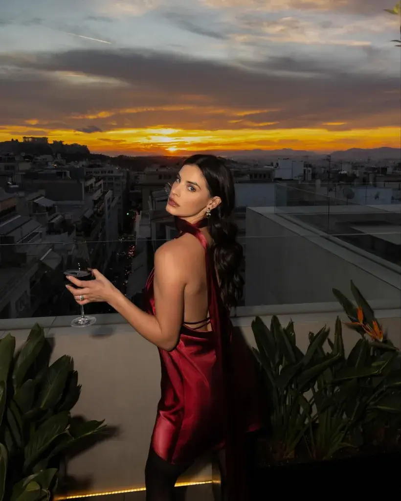 Στη Χριστίνα Μπόμπα ταιριάζει μοναδικά το κόκκινο, καθώς έρχεται σε πλήρη αντίθεση με τη σταρένια επιδερμίδα της. Για τον Άγιο Βαλεντίνο, προτείνει σατέν κόκκινο φόρεμα με την πλάτη… εκτεθειμένη που χαρίζει σεξαπίλ και γοητεία.