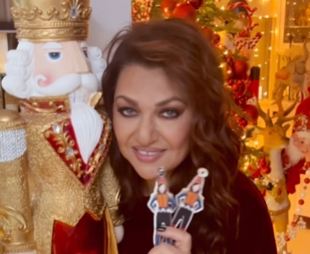 Το σαλόνι της, όπως φαίνεται στις φωτογραφίες που μοιράστηκε στο Instagram, είναι διακοσμημένο με ένα λευκό δέντρο στολισμένο με κόκκινες και βυσσινί μπάλες, ενώ ριγέ γιρλάντες και μπαλόνια σε κόκκινες και λευκές αποχρώσεις δίνουν μια γιορτινή αίσθηση σε όλο τον χώρο.