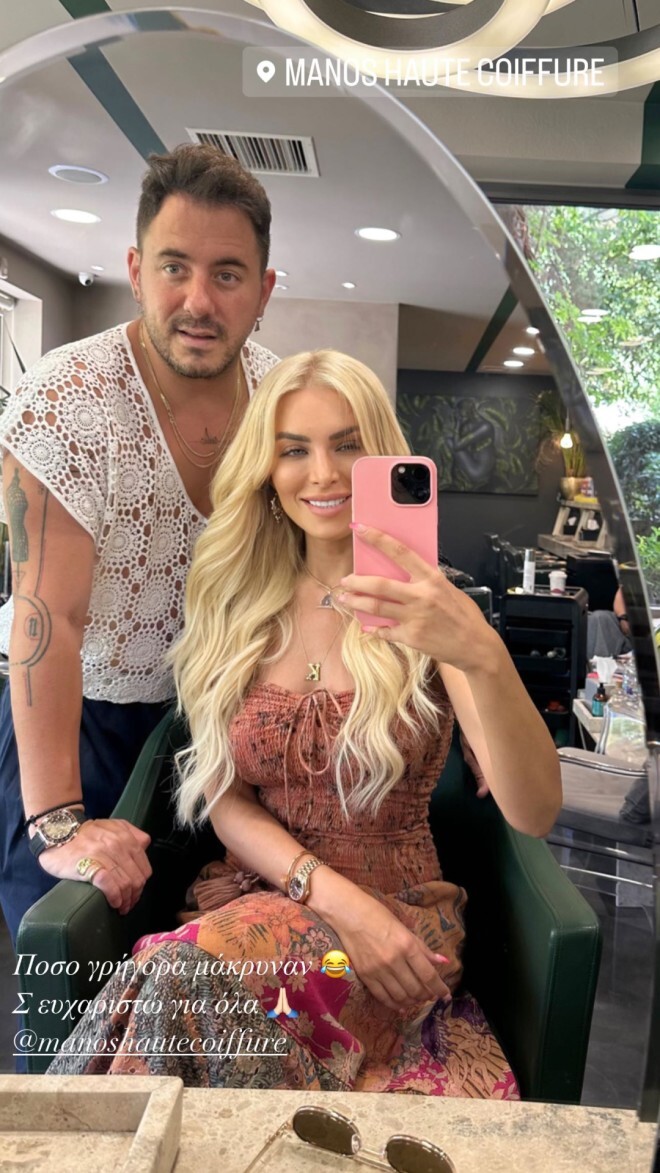 Η Καινούργιου την Δευτέρα, 7 Αυγούστου, αφέθηκε στα χέρια του έμπειρου hair stylist Μάνο Κοψαχείλη και έγραψε στην λεζάντα με χιούμορ: “Μα πως μάκρυναν τόσο γρήγορα;”