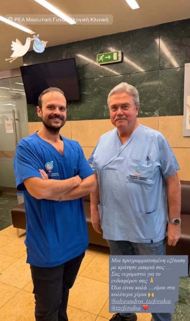 Λίγη ώρα μετά, μέσα από τον προσωπικό της λογαριασμό στο Instagram, η Κατερίνα Καινούργιου πόσταρε φωτογραφία από γνωστό μαιευτήριο των Αθηνών γράφοντας στη λεζάντα: «Μια προγραμματισμένη εξέταση με κράτησε μακριά σας. Σας ευχαριστώ για το ενδιαφέρον σας. Όλα είναι καλά, είμαι στα καλύτερα χέρια».