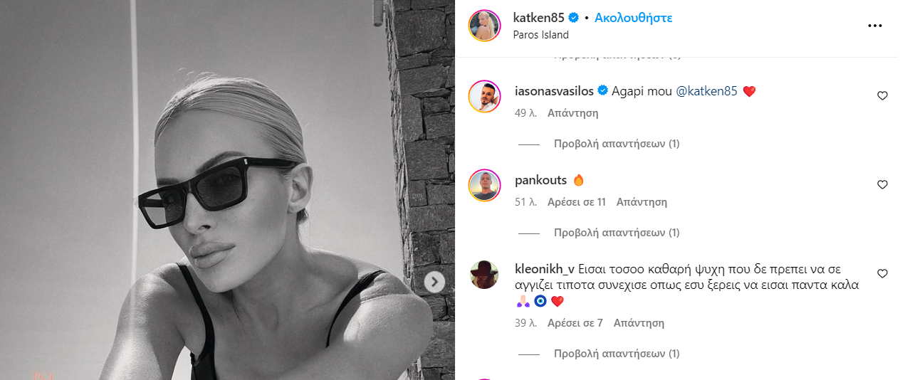 Το σχόλιό του θέλησε να κάνει και ο σύντροφός της, Πάνος Κουτσουμπής, ο οποίος άφησε ένα emoticon με φωτιά.