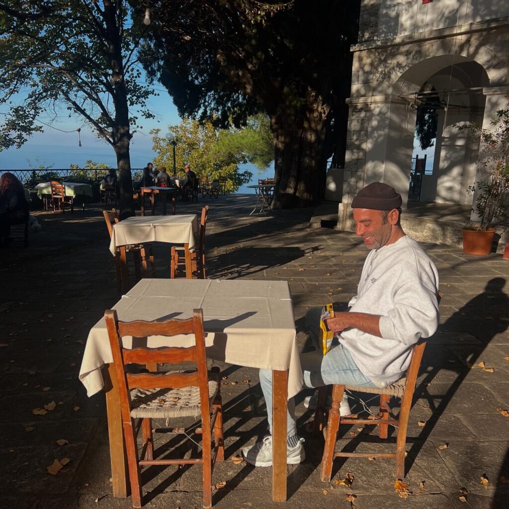Εκείνη ποζάρει χαμογελαστή και λαμπερή, ενώ σε ένα από τα στιγμιότυπα βλέπουμε τον αγαπημένο της να κάθεται σε ένα τραπέζι σε μια ταβέρνα με φόντο μια γραφική πλατεία.