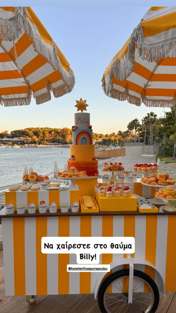 Ο μικρός πήρε το όνομα Βασίλης, από τον πατέρα της Κωνσταντίνας, και η τρυφερή μαμά επέλεξε ένα λευκό φόρεμα για το μυστήριο. Στο εντυπωσιακό πάρτι, που ακολούθησε, προτίμησε ένα διαφορετικό ρούχο με την υπογραφή της μοναδικής Σήλιας Κριθαριώτη.