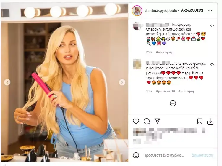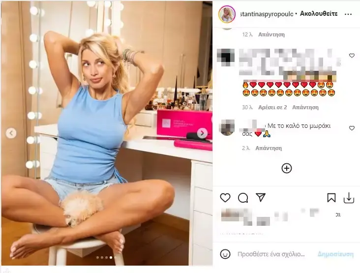 Στη νέα της ανάρτηση πάντως, οι χρήστες του instagram σχολίασαν την κοιλιά της, ενώ κάποιοι μάλιστα έστειλαν και τις ευχές τους στην Κωνσταντίνα Σπυροπούλου.