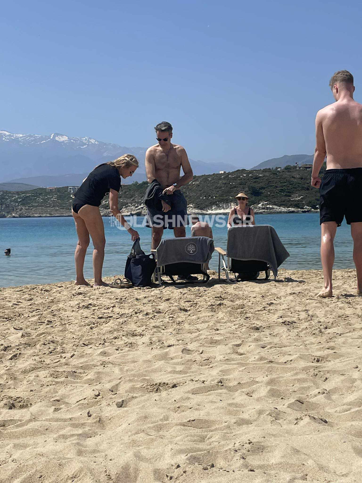 Δεν άλλαξαν ωστόσο πολύ τις συνήθειές τους και επέλεξαν για το θαλάσσιο μπάνιο τους την παραλία στο Μαράθι Χανίων, όπως βλέπουμε στις φωτογραφίες που δημοσιεύει η τοπική ιστοσελίδα flashnews.